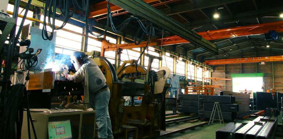 具体的には工場の心臓部であるH鋼の切断機、ロボット溶接機、