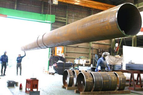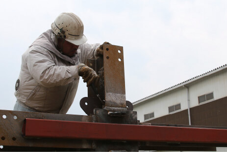 加工が終わった部材を組立し、サイズや部品の種類・寸法位置などが合っているかを確認する作業を、鉄鋼業界では「組立検査」と呼んでいます。不具合が発見された場合は、この時点で修正します。