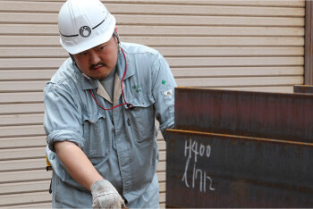加工前の鋼材は、商社や鋼材販売業者から仕入れます。鋼材は決められた長さで販売されているので、ムダなく(歩留まり良く)使えるよう綿密な計算を行いコストを削減します。