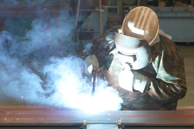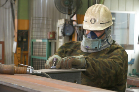 仕入れた鋼材は、一次加工と呼ばれる切断や穴開け加工が施されます。その後は表面に付いた酸化皮膜を落とすためのショットブラスト処理や構造上重要な部分には突合わせ溶接をする為に開先作業が施されます。
