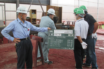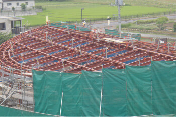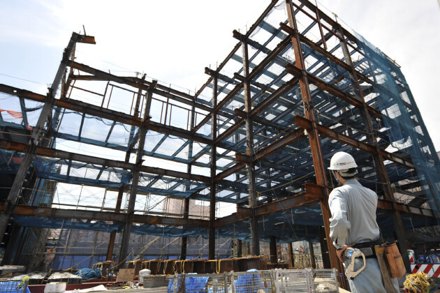建築現場に納品した鉄骨を組み立てる作業を、「建方(たてかた)」と呼んでいます。実際の作業は外部の鳶職人さんに委託しますが、当社では建方終了までの現場管理を担当します。